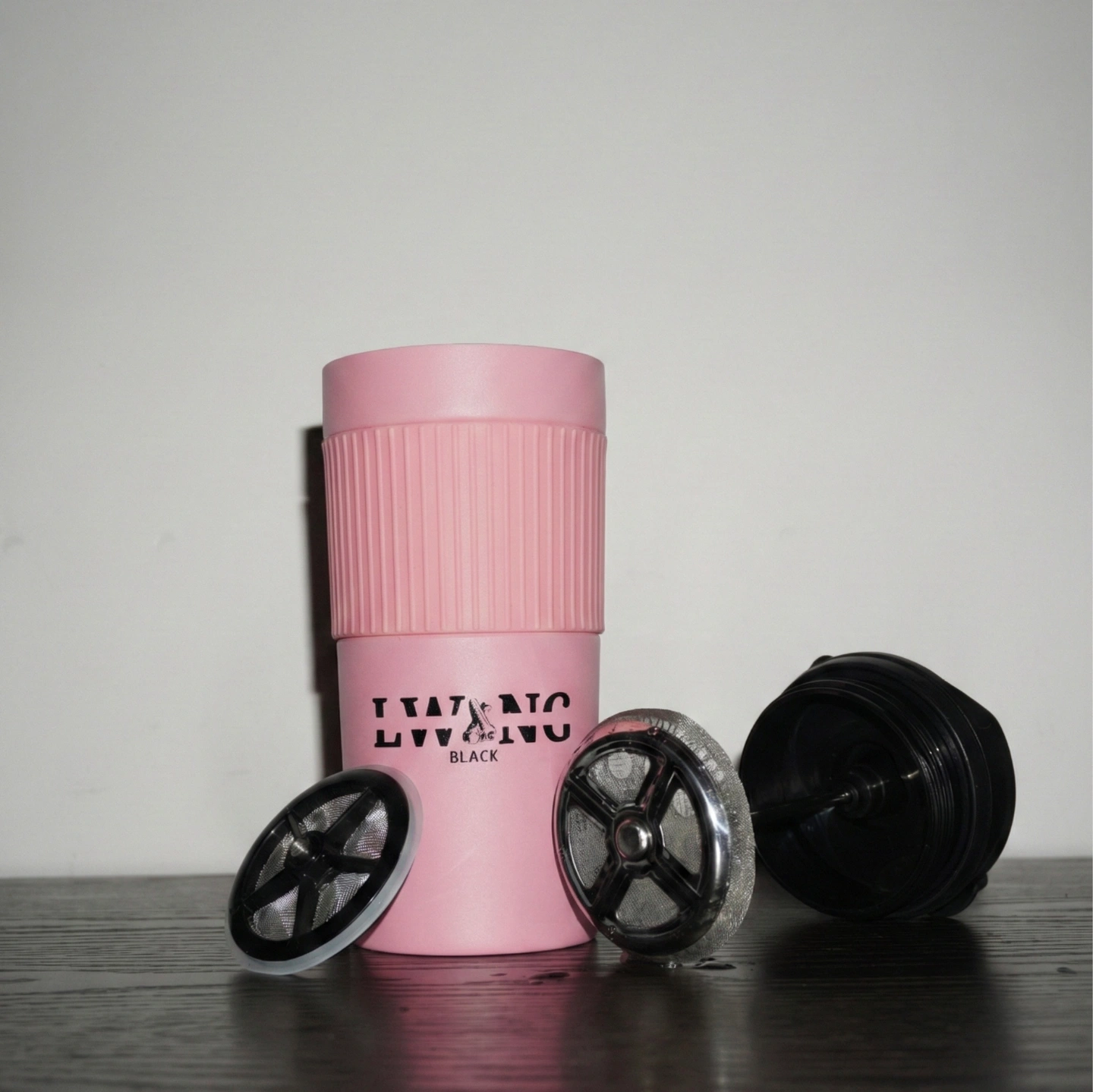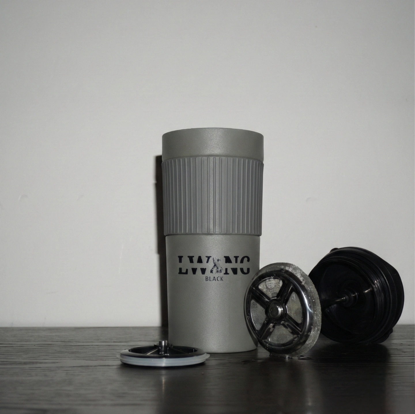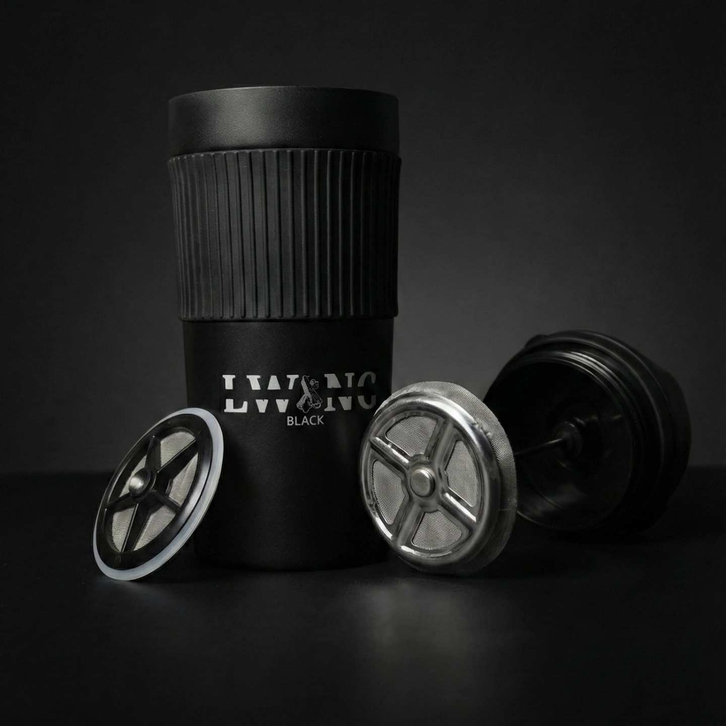 An insulated coffee plunger, elegantly designed to brew the perfect cup of Lwang Black Mix coffee. Its insulation ensures optimal temperature retention, enhancing your coffee experience.